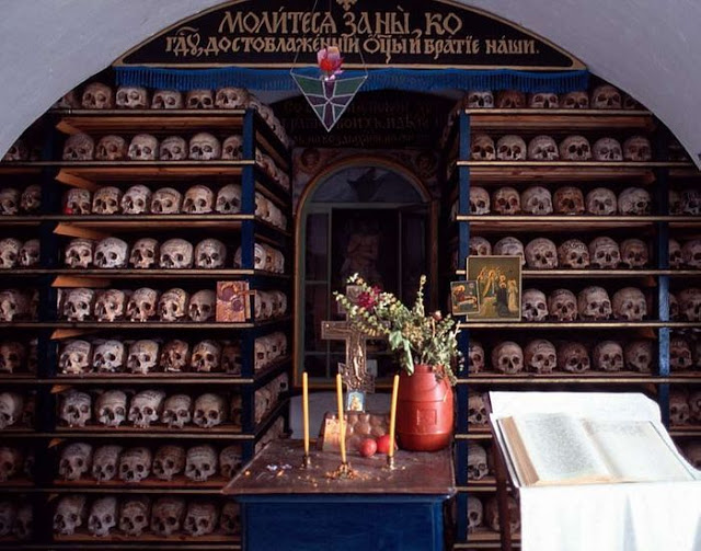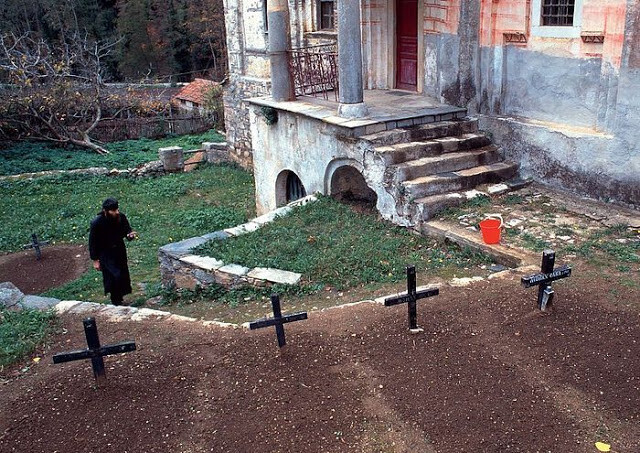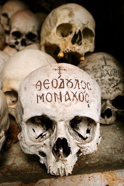 Na Svaté Hoře Athos nenajdete rozlehlé hřbitovy s náhrobky. Kvůli nedostatku půdy a staleté tradici zde mniši praktikují dočasné pohřbívání, po kterém jsou ostatky přeneseny do společných kostnic.
