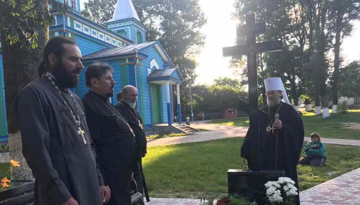 Вірян під час полієлея помазав святим єлеєм, освятив дзвони та звершив заупокійну літію по спочилому настоятелю храму протоієрею Федору Деркачу.
