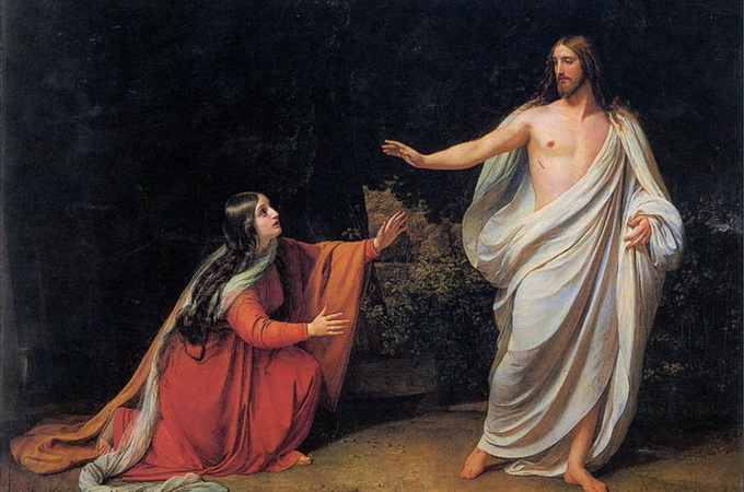 Повага і любов, ніжність і глибока шана, почуття вдячності і визнання Його вищості як великого Вчителя – все злилося в одному цьому вигуку. Вона більше нічого не могла вимовити і кинулася до ніг свого Вчителя, щоб омити їх сльозами радості. Але Господь сказав їй: «Не торкайся до Мене, бо Я ще не зійшов до Отця Мого; а йди до братів Моїх і скажи їм: «Я йду до Отця Свого й Отця вашого, і до Бога Мого й Бога вашого».