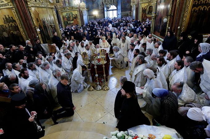 Після закінчення Божественної Літургії заупокійне богослужіння в Успенському соборі обителі очолив митрополит Істринський Арсеній, вікарій Святішого Патріарха.