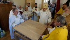 Vladyka Izaiáš očišťuje a posvěcuje prestol. Zdroj: web OBPE