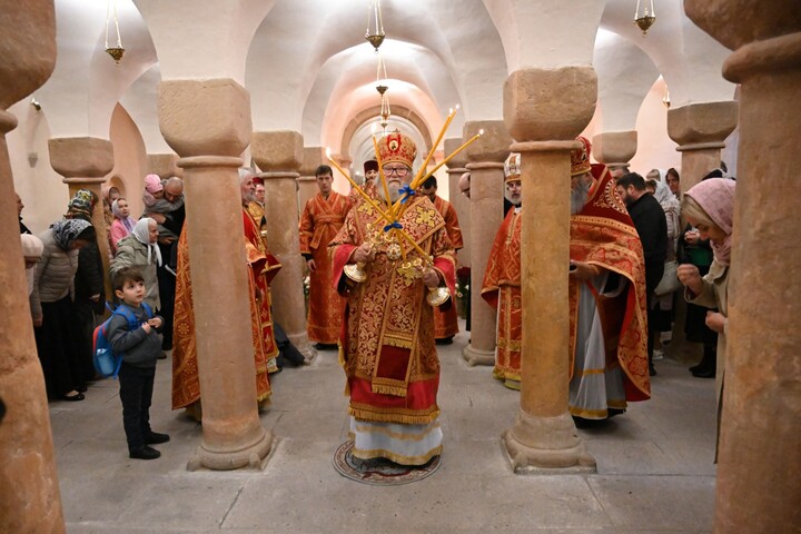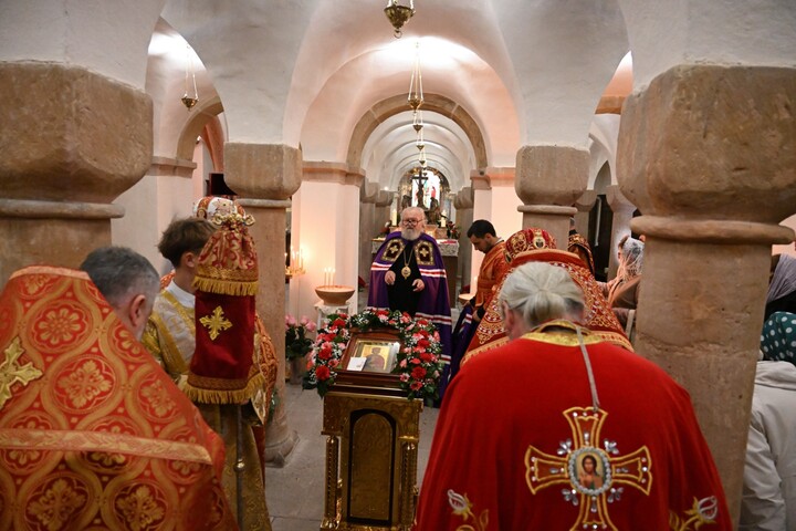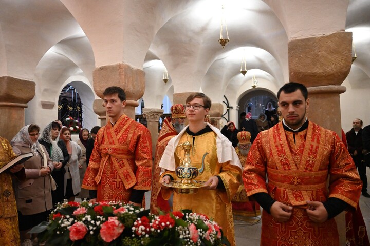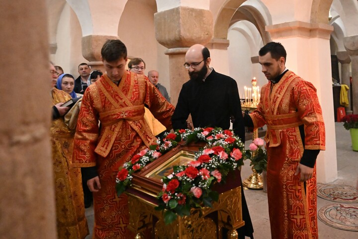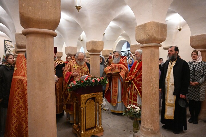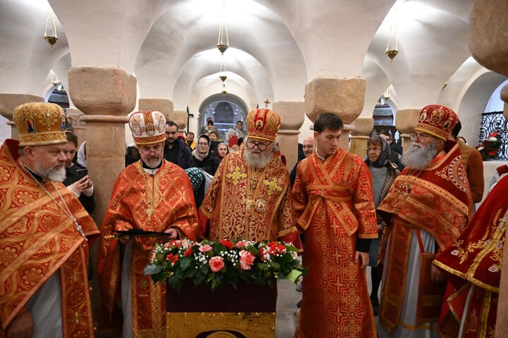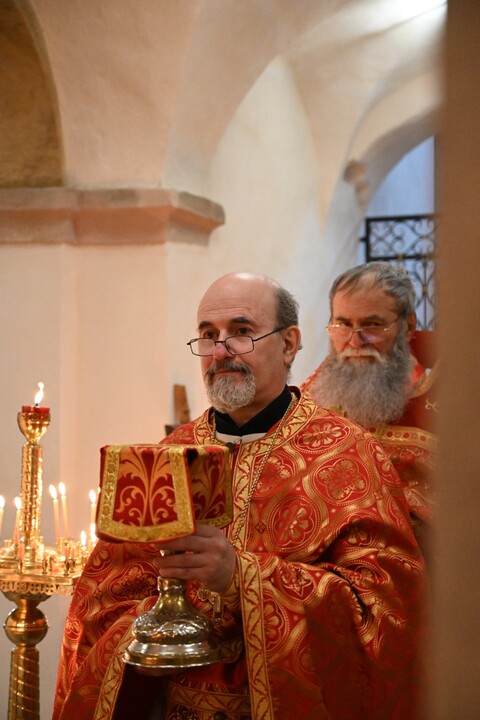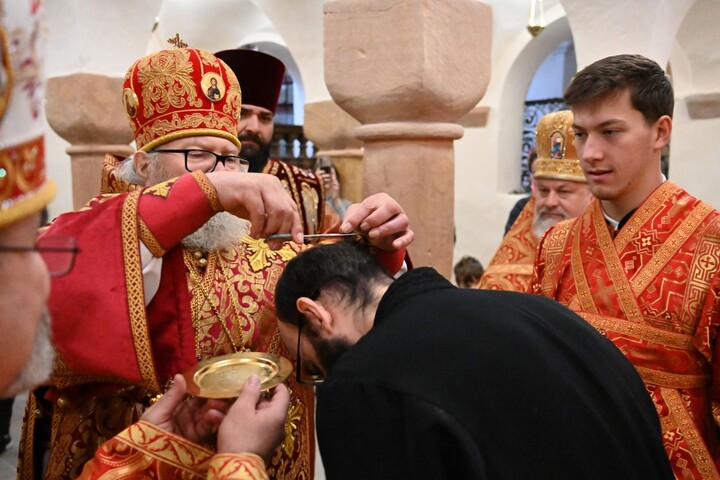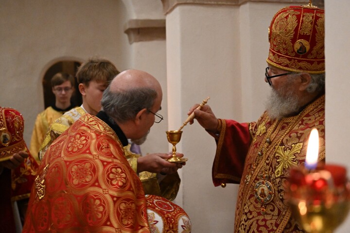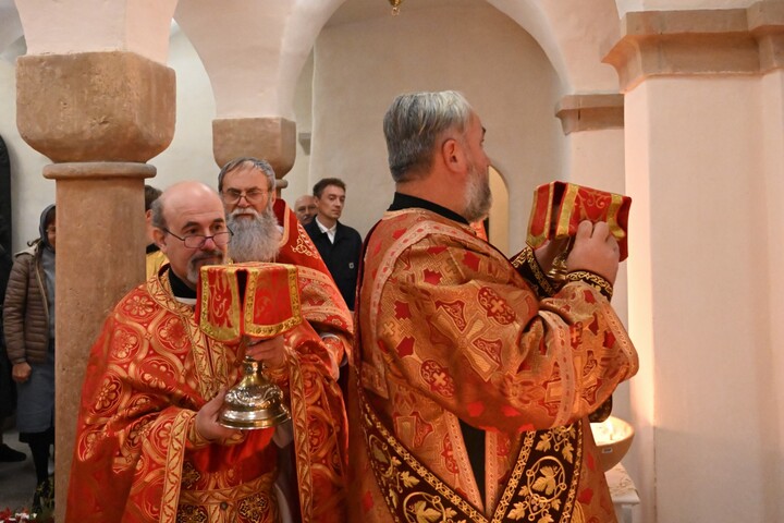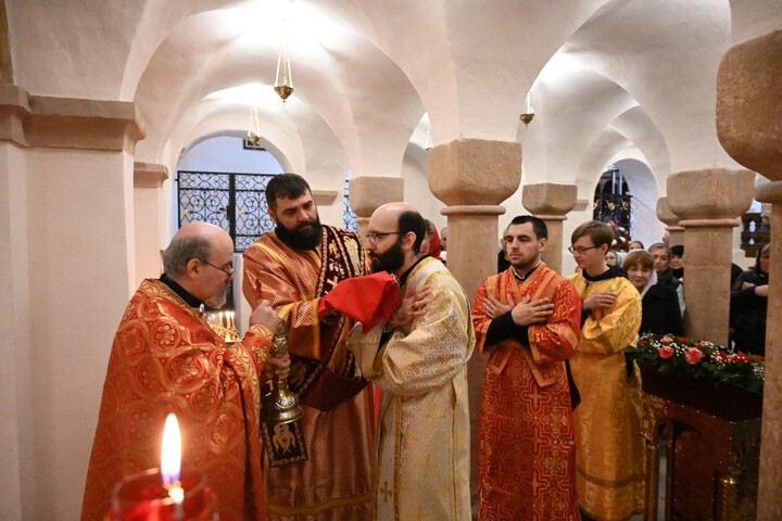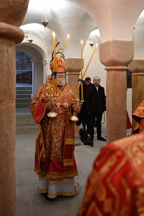 Arcibiskup Michal spolu s duchovenstvem zamířil do dolní kaple svatých Kosmy a Damiána, kde se nachází hrobka svatého Václava i místo jeho smrti. Tam byla sloužená archijerejská lituregie.Během liturgie byl bratr Jordán Moravenov postřižen do hodnosti žalmisty a poté povýšen na hypodiákona, čímž se stal součástí nižšího duchovního kléru, informuje PPE na svém FB.
