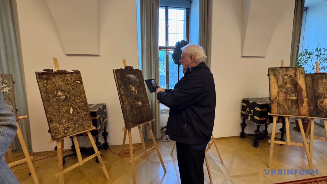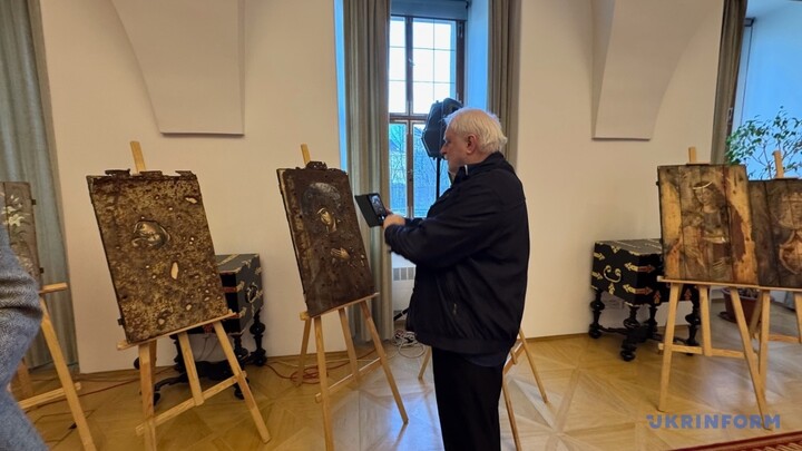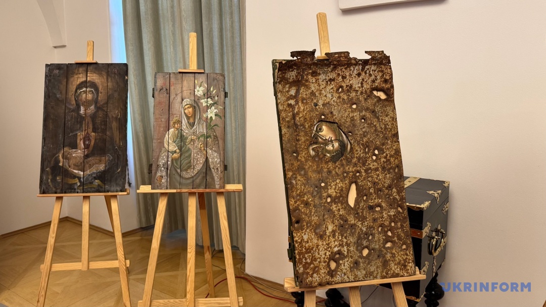 Ukrajina vystavila v českém Senátu ikony napsané na bednách od nábojů