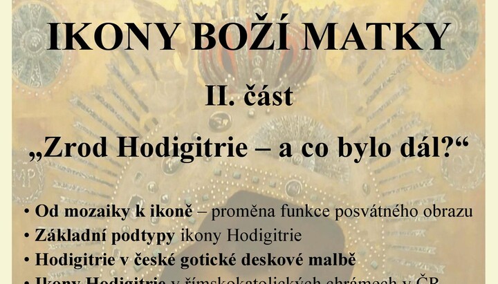 Přednáška s názvem „Zrod Hodigitrie – a co bylo dál?“ začne ve čtvrtek 19. března 2026 v 18:00 hodin v prostorách pražské katedrály v Resslově ulici. Přednášejícím bude otec Vít Metoděj Kout z Františkových Lázní, pozvánka byla zveřejněná na profilu pravoslavné obce.