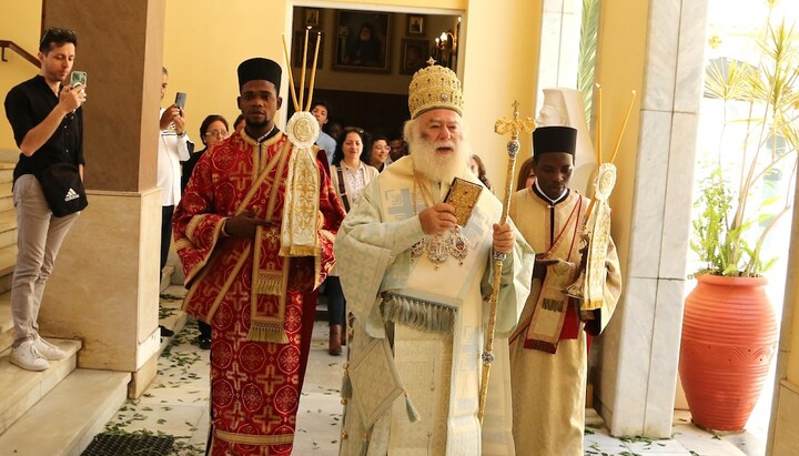 Spolu s patriarchou koncelebrovali metropolita Germanos z Tamiatheu a biskup Damaskinos z Mareotis. Bohoslužby se zúčastnili také představitelé řecké komunity v Egyptě a početní věřící z Alexandrie i poutníci ze zahraničí.