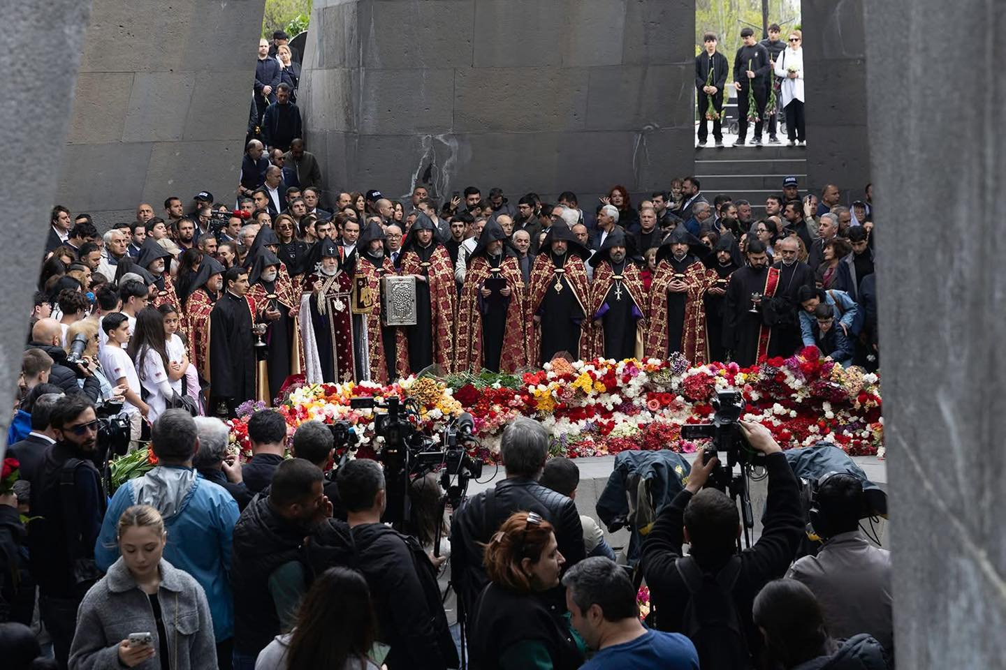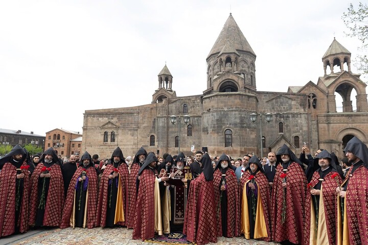Dnes 24. dubna, v Den památky svatých mučedníků arménské genocidy, sloužil Katolikos všech Arménů Karekin II. božskou liturgii v katedrále Matky stolice v Ečmiadzinu. K uctění věřícími byla vystavena schránka s ostatky svatých mučedníků arménské genocidy. Podle sociálních sítí Arménské apoštolské církve poté Katolikos v doprovodu duchovenstva navštívil památník Cicicernakaberd v Jerevanu, kde položil věnec a sloužil panychidu za svaté mučedníky genocidy u věčného ohně.