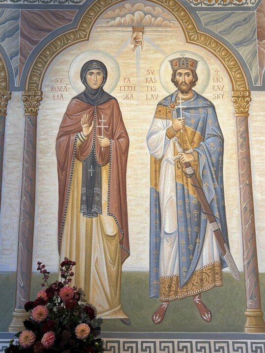 Arcibiskup Juraj přiblížil také duchovní bohatství relikvií a ikon: „V našem chrámu najdete ikony, které pocházejí od pravoslavných i nejen pravoslavných umělců z celého světa. V nich často bývají vloženy relikvie svatých, tedy zlomky pozůstatků těl těchto oslavených bratří a sester. Najdete zde svaté z Blízkého východu, novomučedníky, kteří v době osmansko-turecké nadvlády hovořili řecky nebo arabsky. Proto jsou nápisy v různých jazycích. Najdete zde i naše slovenské svaté – svatého Andreje-Svorada a svatého Benedikta Nitranského, kteří jsou součástí naší identity a kulturního dědictví. Najdete zde i české svaté – Václava, Ludmilu, Ivana a Prokopa. Najdete v našem chrámu i ikonu s ostatky svatého Štěpána Uherského, našeho prvního korunovaného krále, který zasvětil celé své království, tedy včetně našeho Slovenska, přesvaté Bohorodičce, Matce Boží. "
