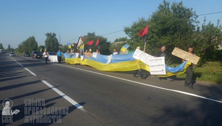 Националисты шли параллельно Крестному ходу, развернув красно-черное знамя. Как свидетельствуют очевидцы, радикалы постоянно выкрикивали лозунги, перемежая их нецензурной бранью в адрес крестоходцев. Через громкоговоритель неслись выкрики «Россия агрессор», «Чемодан, вокзал, Москва». Крестоходцев снимали на видео, запугивали.