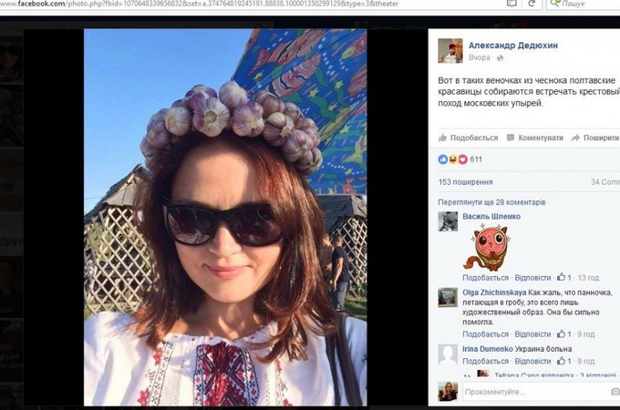 Напомним, священник УПЦ КП опубликовал на своей странице Facebook фото полтавской девушки в венке из чеснока и сделал подпись: «Вот в таких веночках из чеснока полтавские красавицы собираются встречать крестный ход московских вампиров».