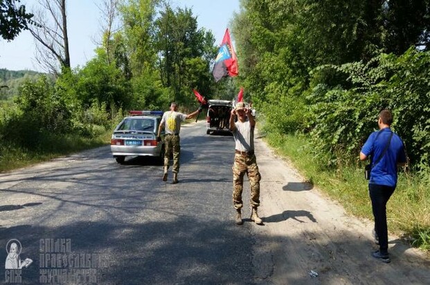 «Сегодня националисты выбрали новую тактику, – рассказывает архимандрит Иоасаф (Ковецкий), возглавляющий Крестный ход. – Они уже не движутся параллельно с нами, как раньше, а стараются забежать вперед и затормозить наше шествие».