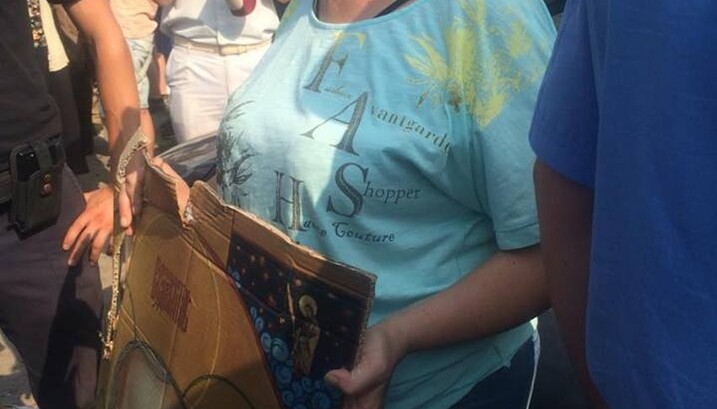 Люди в футболках «Автомайдан» принесли крестоходцам «икону Путина»