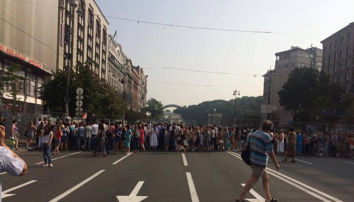 В связи с этим прохождение верующих на праздничные мероприятия на Владимирской горке чрезвычайно затруднено, поскольку собралось большое количество верующих.