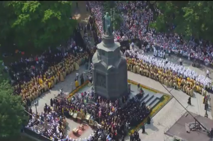 Верующие во главе с Предстоятелем УПЦ возносят молитвы на Владимирской горке