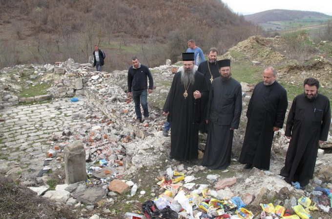 Местный приходской священник Звонко Костич сообщил, что сербы собрались на развалинах храма Святого Архангела Гавриила, уничтоженного албанскими экстремистами в 1999 году.