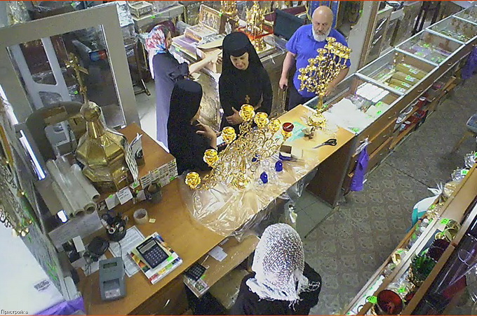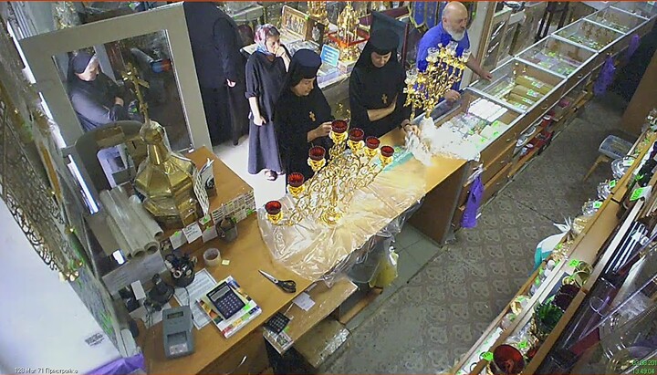 Поход по церковным магазинам, расположенным на территории Киево-Печерской Лавры, зафиксировали камеры видеонаблюдения. Автомобиль "Крайслер" священника подъехал ко входу в Лавру со стороны ул. Лаврской. Затем протоиерей Зинкевич зашел в церковную лавку и принялся осматривать товары.