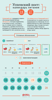 Календарь Успенского поста - 2016
