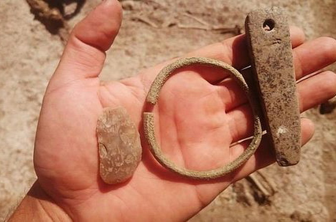 «На уровне погребений VI века нашей эры обнаружен интересный артефакт – колокольчик из медного сплава, располагавшийся на браслете с раздвижными краями. По мнению археолога Павла Гецко, это колокольчик, который надевали на руку ребенка, чтобы слышать, где он находится. Своеобразная радионяня древних», – говорится в пресс-релизе фонда «Археология».