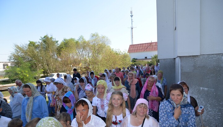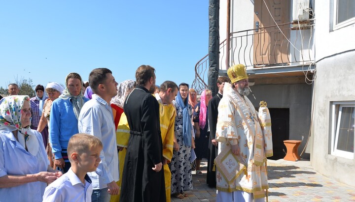 За богослужением Владыке сослужили клирики Херсонской епархии. После литургии был совершен крестный ход вокруг Сергиевского храма.