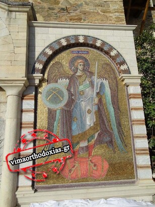 Две великолепных мозаики, изображающие Архангелов Михаила и Гавриила, которые отныне украшают главный вход в монастырь, были открыты в рамках празднования киновией памяти Архангелов-покровителей.