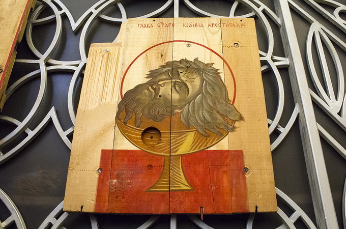 Митрополит Александр (Драбинко) организовал выставку икон на ящиках из-под патронов