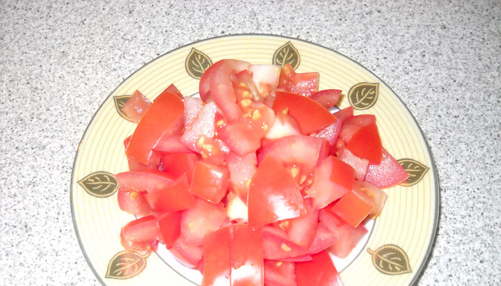 Варить 1-2 мин, вынуть из воды, остудить и порезать крупными кусочками неправильной формы.