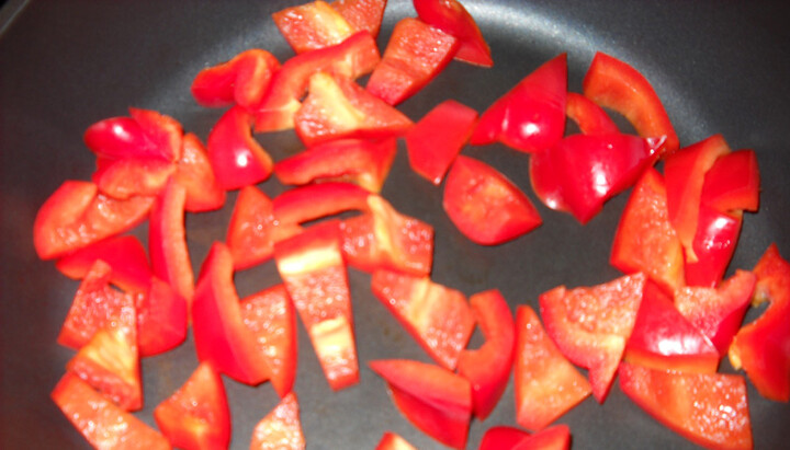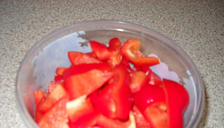 Перец порезать крупными кусочками (примерно, как кальмары).