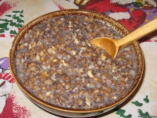 Смешать пшеницу, мак и орехи, дать немного настояться. Сочиво готово.