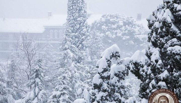 Неожиданно начавшись в ночь на Рождество Христово, сильный снегопад не прекращается на Святой Горе уже пять дней.