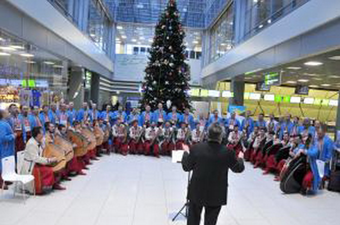 Капелла бандуристов спела рождественские колядки в аэропорту Жуляны (ВИДЕО)