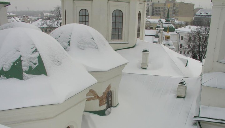 Купола Софийского Собора замело 1,5-метровыми сугробами: Чистим! (ФОТО)