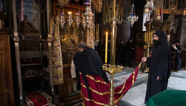 На торжественном богослужении присутствовали многочисленные паломники из Сербии, Греции и других православных стран, а также братия монастырей и скитов Афона.