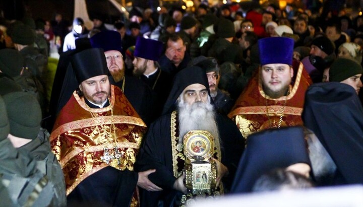 «Помолиться за своих родственников, друзей и товарищей, а также о нашей многострадальной стране, ибо она, как никогда, нуждается в мире, потому что на Востоке Украины проливается кровь, идет братоубийственная война, и народ наш устал от тяжести таких испытаний. Но мы верим, что принесение этой святыни успокоит сердца людей, поспособствует сохранению мира в нашей Украине. Будем же молиться, чтобы этот мир наполнил сердца человеческие, став достоянием каждого гражданина нашего общества», – подчеркнул митрополит Агафангел.