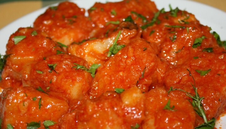 КАРТОФЕЛЬ, ТУШЕНЫЙ С ПОМИДОРАМИ