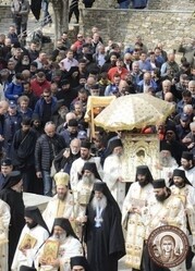 Крестный ход состоялся в Протате – духовном и административном центре Святой Горы в Карее. По многовековой традиции протатским крестным ходом полагается начало чреде подобных торжественных шествий, совершаемых во всех обителях Афона во вторник или среду Пасхальной недели. По святогорскому преданию все эти процессии символизируют обход Царицы Небесной Своего земного Удела.