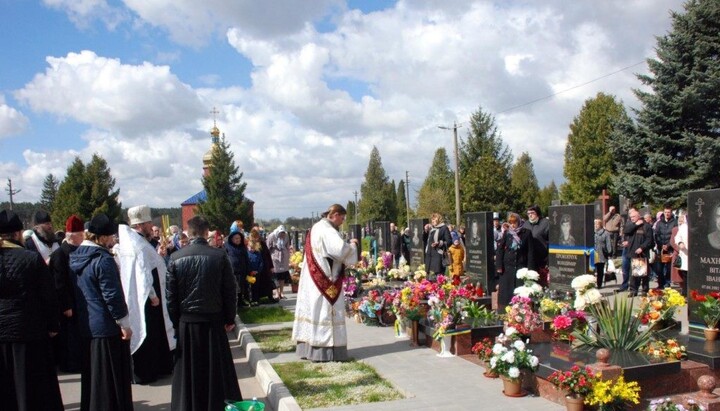 В этот же день священнослужители Луцкого районного благочиния Волынской епархии УПЦ совершили Крестный ход и заупокойное богослужение на Аллее славы и на местном кладбище. Литию возглавил благочинный округа протоиерей Владимир Литвенчук. Во время молитвы песнопения исполнял хор студентов Волынской духовной семинарии.