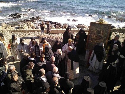 По окончании богослужения Иверская икона была принесена на место, где она была обретена в 1004 году иноком Гавриилом.