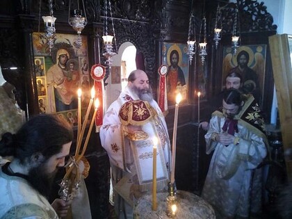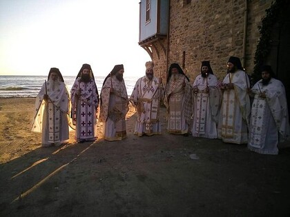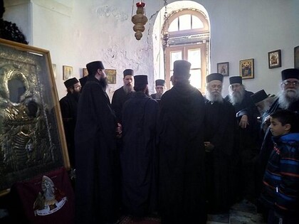 Процессия обошла вокруг обители и направилась в храм Иверской иконы, где была отслужена Божественная литургия. Богослужение возглавил митрополит Лангадасский Иоанн. Ему сослужили игумен Ивирона архимандрит Нафанаил и проигумен Иверской обители архимандрит Василий (Гондикакис).