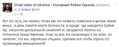 Главный раввин Киева и Украины Моше Асман выразил свое возмущение этой вывеской. «Вот эту жуть (не нахожу слова как это назвать) повесили в центре Киева вчера, в день памяти жертв Холокоста, в городе, где находится Бабий Яр», – написал он утром 25 апреля на странице в соцсети Facebook.
