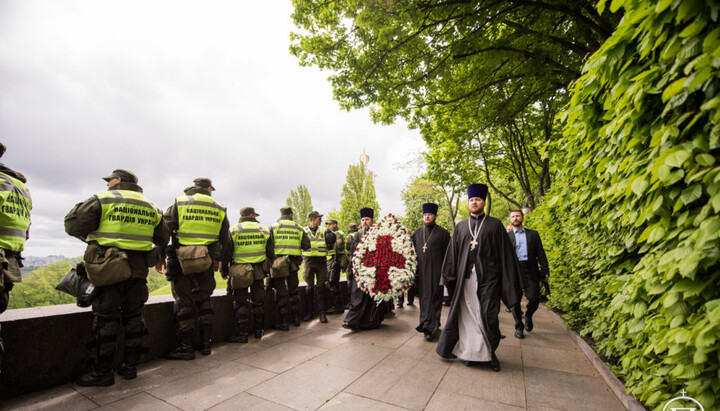 В этот же день Предстоятель УПЦ вместе с Президентом Украины и всеми присутствующими прошел Дорогой Памяти по Аллее Погибших Героев.
