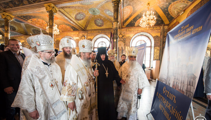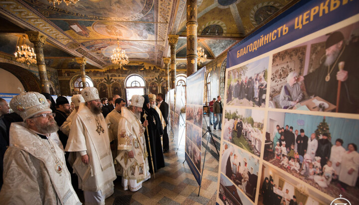 После Божественной литургии и торжественного благодарственного молебна Блаженнейший Митрополит Киевский и всея Украины Онуфрий в Трапезной палате храма в честь преподобных Антония и Феодосия Печерских Свято-Успенской Киево-Печерской Лавры открыл экспозицию фотографий об истории Украинской Православной Церкви в течение четверти века после проведения Харьковского архиерейского собора.