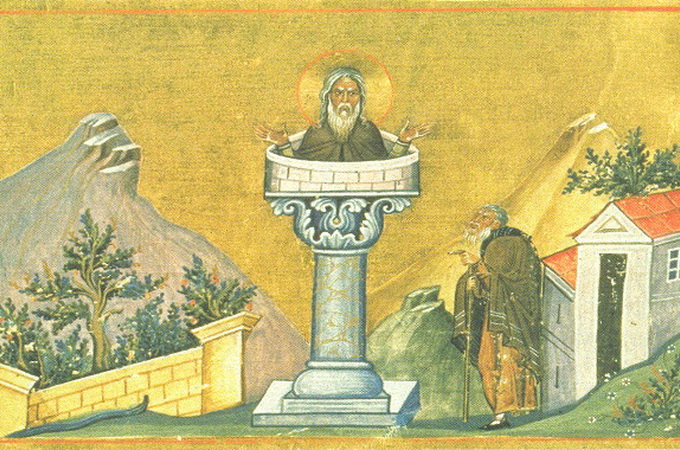 Он призвал братию монастыря, преподал им в прощальной беседе благословение и мирно отошел к Богу в 596 году, потрудившись в подвиге столпничества 68 лет.