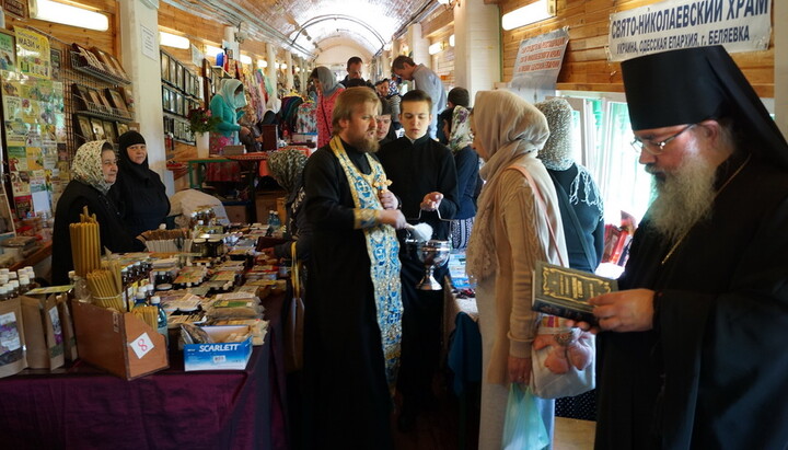 На «Троицкой» выставке представлен постоянный ассортимент церковной и промышленной продукции: духовно-нравственная литература, иконопись, аудио-, видеопродукция церковно-исторической и богословской направленности, изделия мастеров народных ремесел, предметы церковной и домашней одежды ручной работы и изготовленные в швейных мастерских, монастырские травяные лечебные сборы, разные сорта меда, продукты пчеловодства. Можно подать записки о поминовении православных христиан в монастырях Украины.
