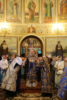 Сегодня Царица Неба и земли собрала всех нас в этом святом храме, в этой обители, чтобы порадовать нас Своей милостью и милостью Своего Сына. Она собрала нас, чтобы утешить, чтобы мы никогда не отдалялись от этого чертога, этого корабля Божией благодати, который шествует по бурному житейскому морю и который единственный ведет нас к спасению и вечным благам в чертогах Отца Небесного».