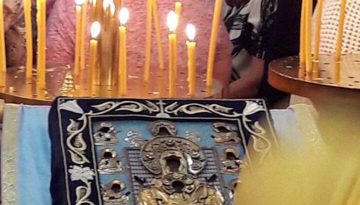 В знак благословения Блаженнейший Владыка подарил новоосвященном храму икону преподобных Иова и Амфилохия Почаевского.