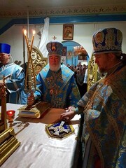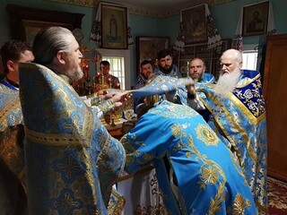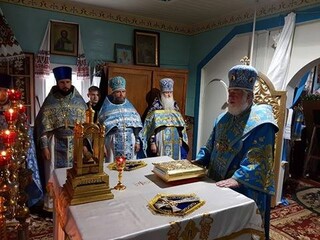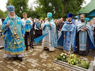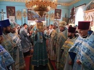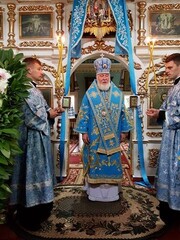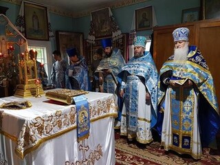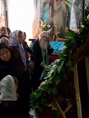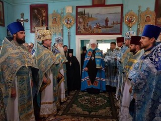 В завершение празднования был совершен молебен с обхождением вокруг храма. Владыка поздравил настоятельницу игуменью Алевтину (Сирук) и сестер обители с монастырским юбилеем.