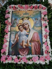 В 30-х годах XX века Белевской обители была подарена икона Богоматери «Достойно есть» с Афона. Когда обитель разрушили, икона была перенесена на горнее место приходского храма, где она находилась до сих пор. В день 25-летия святыню было решено перенести в монастырский храм, посвященный этому образу, заменив его копией, освященной в этот день.