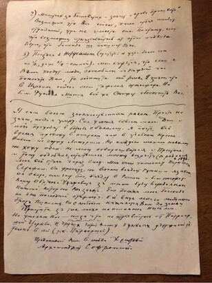 Автор письма отвечает отказом на приглашение совершить паломничество в Иерусалим, ссылаясь на возраст и проблемы со здоровьем. На тот момент он был «уже 3/4 – слепой» и имел онкозаболевание. Также архимандрит Софроний выразил сожаление, что уже не может служить Литургию. Однако он все же надеялся посетить Россию. В завершении письма архимандрит Софроний (Сахаров) еще раз призывает оставаться в истинной православной Церкви.