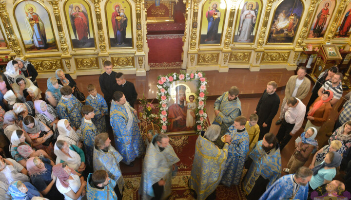 Образ Матери Божьей встречали цветами, песнопениями и молитвами. В соборе Рождества Христова был отслужен молебен с акафистом и совершено всенощное бдение. Присутствующие были помазаны святым елеем, могли вознести молитвы к Матери Божией перед Ее чудотворной иконой и приложиться к святыне.