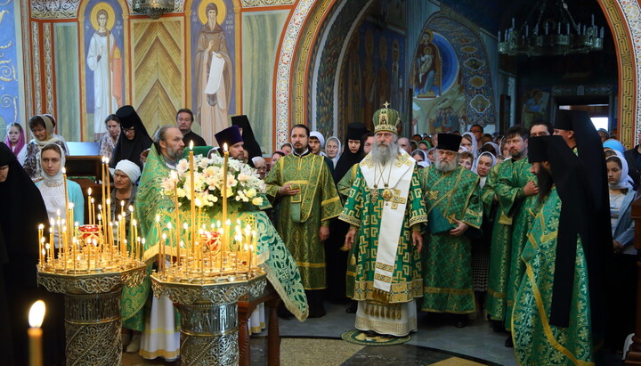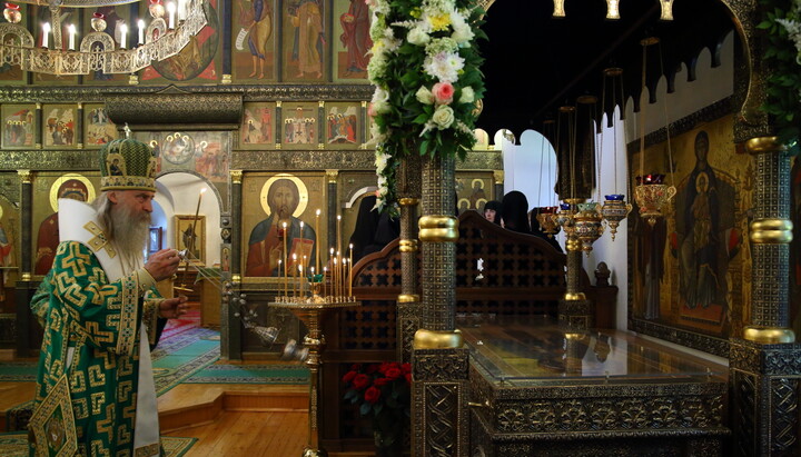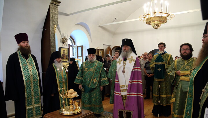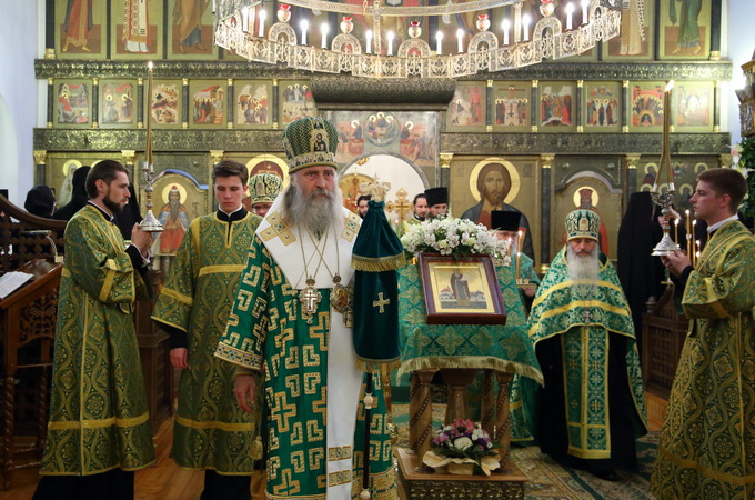 Владыка Феогност поздравил молящихся с престольным праздником обители и обратился к собравшимся с архипастырским словом.