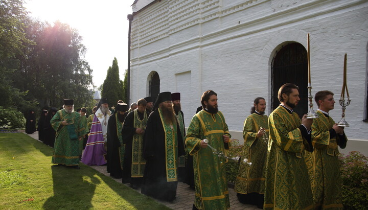 Поздняя Литургия совершалась в Троицком храме монастыря, возглавил ее архиепископ Сергиево-Посадский Феогност. Перед началом поздней Божественной литургии у святых врат обители состоялась встреча крестного хода из Троицкого храма города Карабаново.